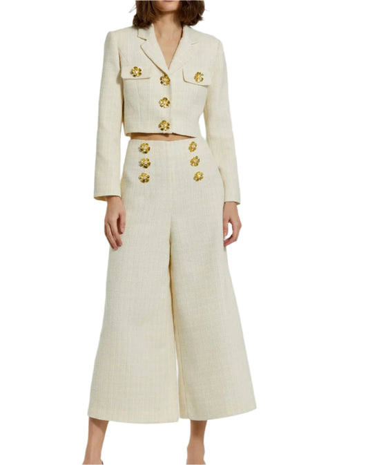 Tweed High Waisted Wide Leg Pants - Ivory